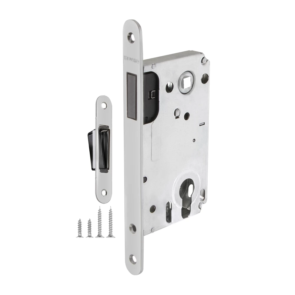 Бесшумный магнитный корпус замка Fuaro 5300-M-C изготовлен в соответствии с требованиями ГОСТ 5089-2011. Предназначен для установки в деревянные межкомнатные и сантехнические двери с комплектованием цилиндром, подходит для дверей левого и правого открывания. Корпус выполнен из стали с надежным гальваническим покрытием. Магнитный механизм обеспечивает бесшумность работы замка. Защелка 5300-M-C c усиленным блоком пружин имеет высший 4 класс надежности (250 000 циклов открывания/закрывания). Отверстия под стяжные винты находятся на расстоянии 38 мм. Возможна установка дверных ручек на стяжные винты для более прочного крепления. В комплектацию входят: ответная планка с магнитной вставкой и крепежная фурнитура в цвет изделия.