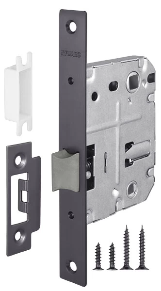 Дверная защелка с пластиковым механизмом Fuaro P72 серии PLASTIC изготовлена в соответствии с требованиями ГОСТ 5089-2003. Предназначена для установки в деревянные межкомнатные двери. Легкая смена направления язычка защелки, подходит для дверей левого и правого открывания. Корпус выполнен из стали с надежным гальваническим покрытием. Ударопрочный пластиковый механизм обеспечивает бесшумность работы защелки. Защелка P72 с усиленным блоком пружин имеет высший 4 класс надежности (250 000 циклов открывания/закрывания). Отверстия под стяжные винты находятся на расстоянии 35-41 мм. Размер бэксета - 50 мм. Размер межосевого расстояния - 70 мм. Возможна установка дверных ручек на стяжные винты для более прочного крепления. Цвет: графит. В комплектацию входят: ответная планка с декоративной вставкой и крепежная фурнитура в цвет изделия.