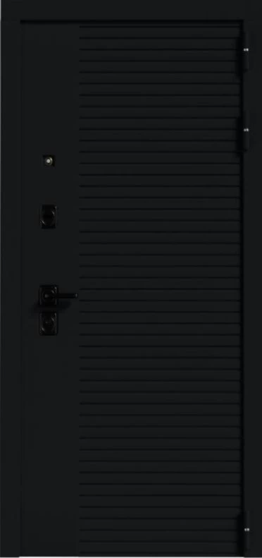 Ручка черная на квадратной планке раздельная стяжная; цилиндр ключ/вертушка, независимая ночная задвижка, глазок над замковой группой.